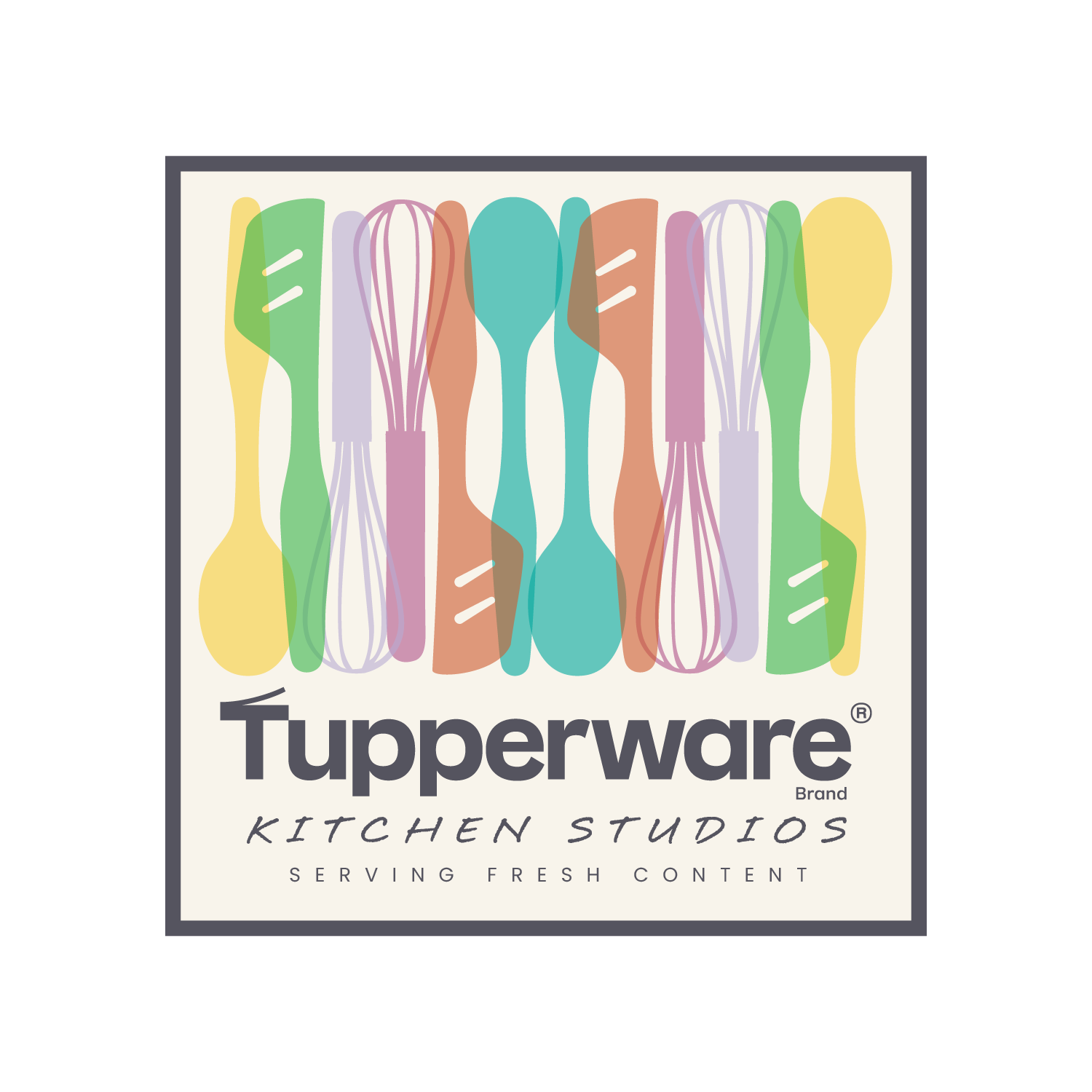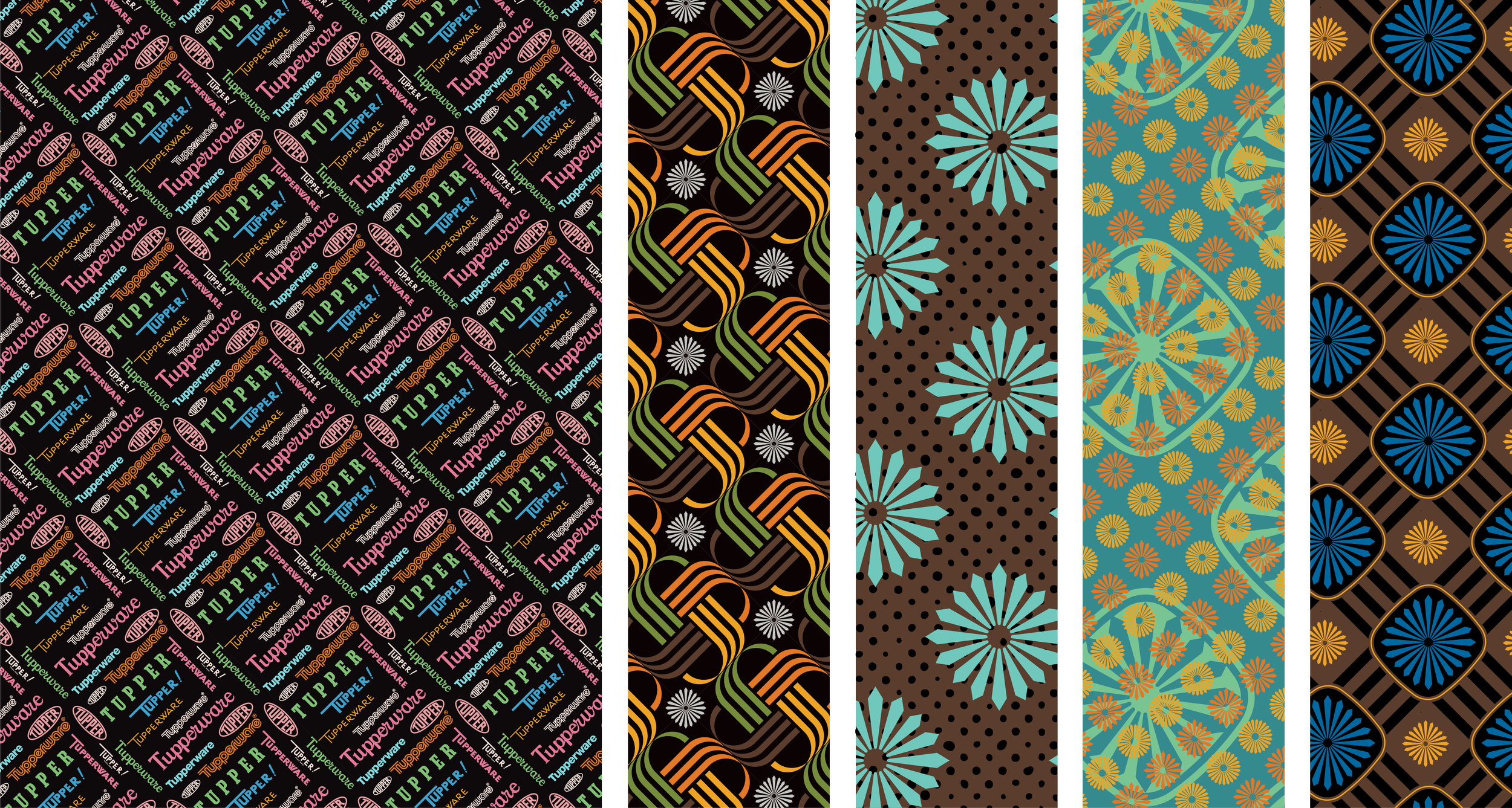 Tupperware creative team approached me to develop branding for a content studio department within their organization. The name would be “Tupperware Kitchen Studios”. Below are a few of the initial designs. The utensil silhouettes are drawn from actual Tupperware designs and baked into the logo. My goal for these designs was to build something that could work with different colors across different surfaces. I also developed several patterns. I love patterns.