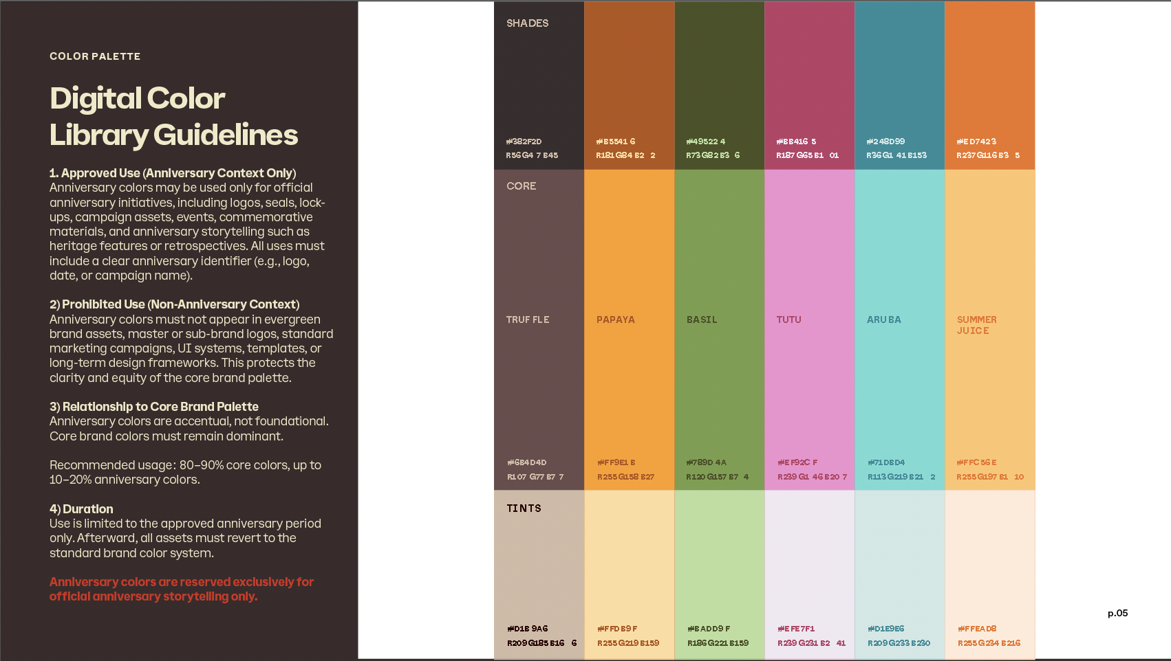 I was asked to put together an 80th Anniversary Tupperware Brand Guidelines document to help guide sales and internal design teams through usage and market deployment.