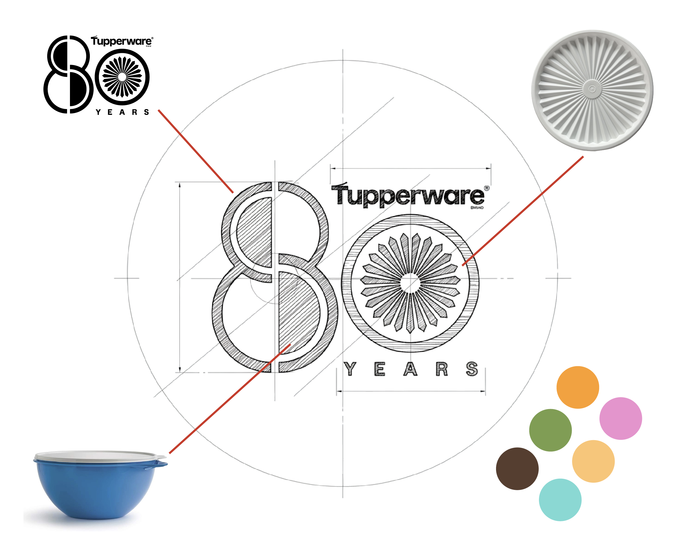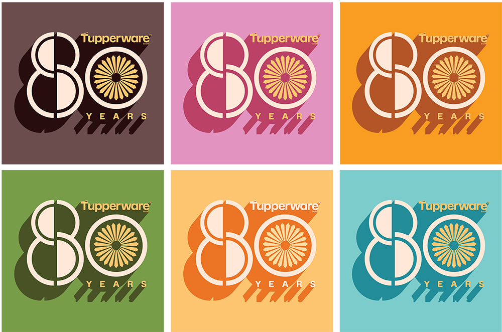 The 80th Anniversary Tupperware Brand logo was created as a celebration of heritage, function, and enduring design. At its core, the mark draws inspiration from Tupperware’s iconic radial seal pattern—the unmistakable sunburst found on classic lids that symbolizes freshness, protection, and trust. This familiar motif is reimagined as the “0” in 80, anchoring the anniversary in a visual language customers instantly recognize.