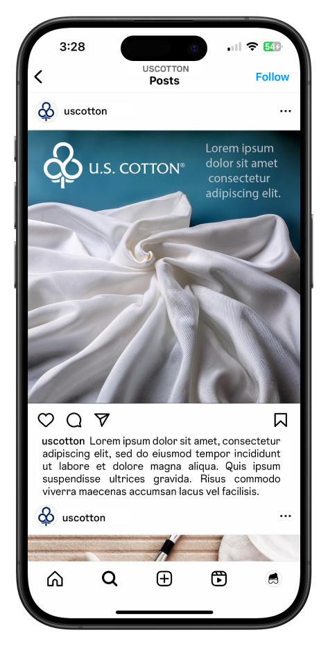 Working with U.S. Cotton, I developed a range of social media post options with focus on showcasing the premium feel of cotton in everyday, refined settings. Below are a few of the highlights. The project was done with minimal input. I focused on refining existing tones and attitudes currently found on their social channels and having some fun along the way.